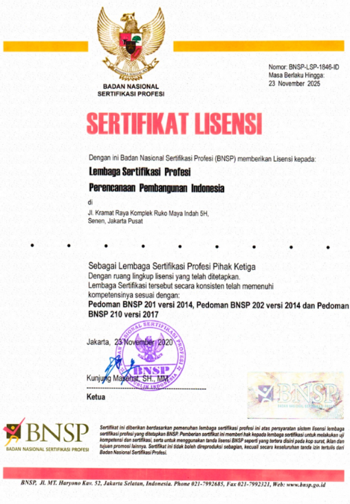 Lisensi dan Keputusan Resmi dari BNSP untuk LSP Perencanaan Pembangunan Indonesia